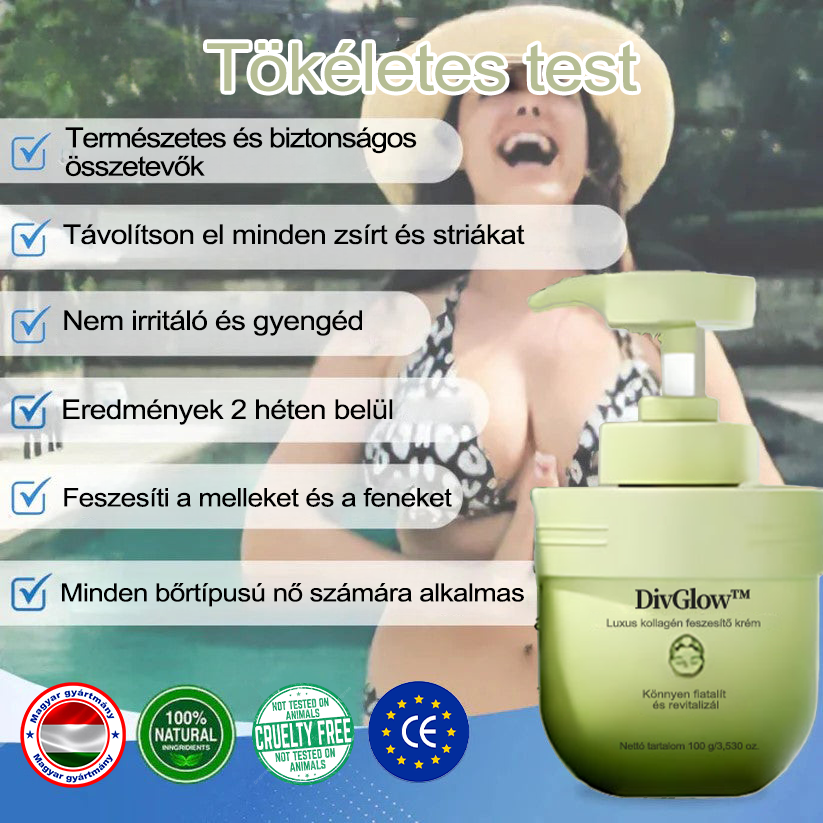 A DivGlow™𝐋𝐮𝐱𝐮𝐬 𝐤𝐨𝐥𝐥𝐚𝐠é𝐧 𝐟𝐞𝐬𝐳𝐞𝐬í𝐭ő 𝐤𝐫é𝐦 egy egyedülálló gyógynövénykeverék, amelyet úgy terveztek, hogy felébreszti és feszesíti a bőrt. Ez a krém segít eltüntetni a striákat, feszesíti a hasat és csökkenti a ráncokat. A DivGlow™ esszenciális krém arról ismert, hogy képes minimalizálni a napfoltok, ráncok és striák megjelenését. A krém különösen ajánlott a frissen szült anyáknak. Különösen ajánlott az újdonsült anyák számára. Ez a termék biztonságosan használható az arcon és a testen a terhesség előtt, alatt és után!