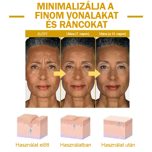 Termékünk a hatékony peptidkészítmény erejét hasznosítja, és megakadályozza az öregedési folyamatokat. Feszesíti bőrét a nyaktól a lábujjakig, csökkenti a vonalakat és ráncokat, és simább, feszesebb bőrt hagy maga után.